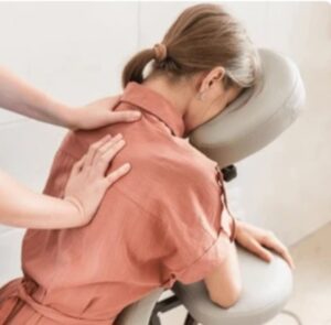 Assis dans une position confortable sur une chaise ergonomique, le praticien va masser la
